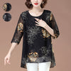 Floral 3/4 Sleeve Crew Neck Flowy Mesh Blouse